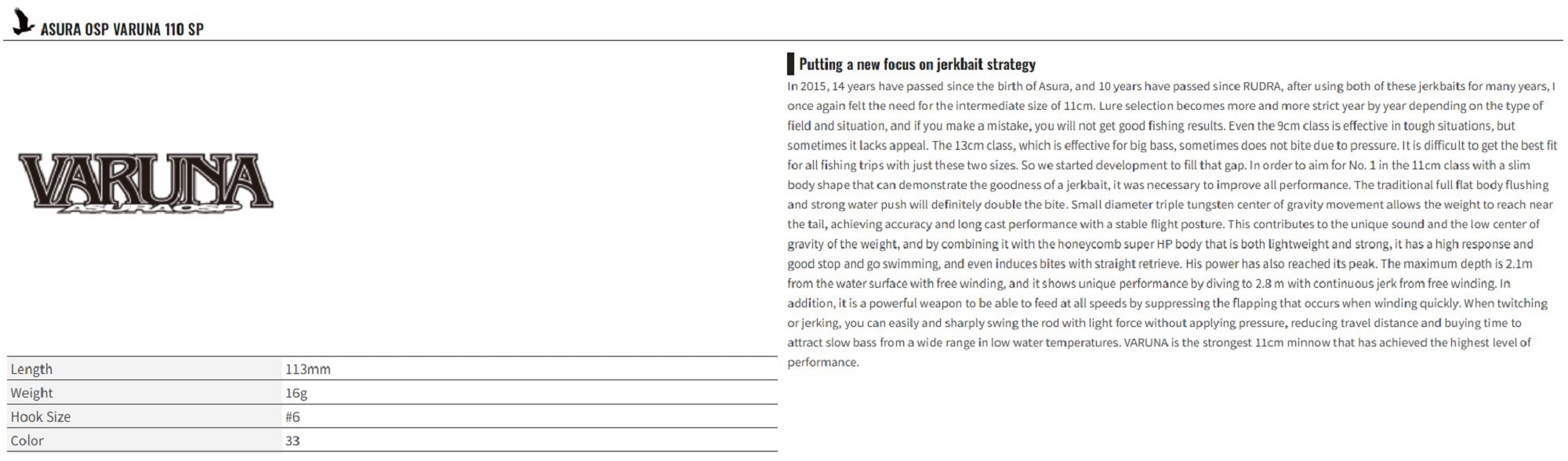 OSP Varuna 110 SP Suspend Minnow Lure PC-91 (4079)