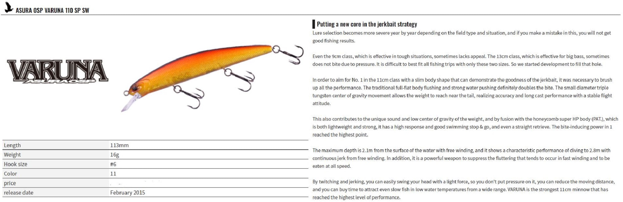 OSP Varuna 110 SP SW Suspend Minnow Lure TS-15 (0811)