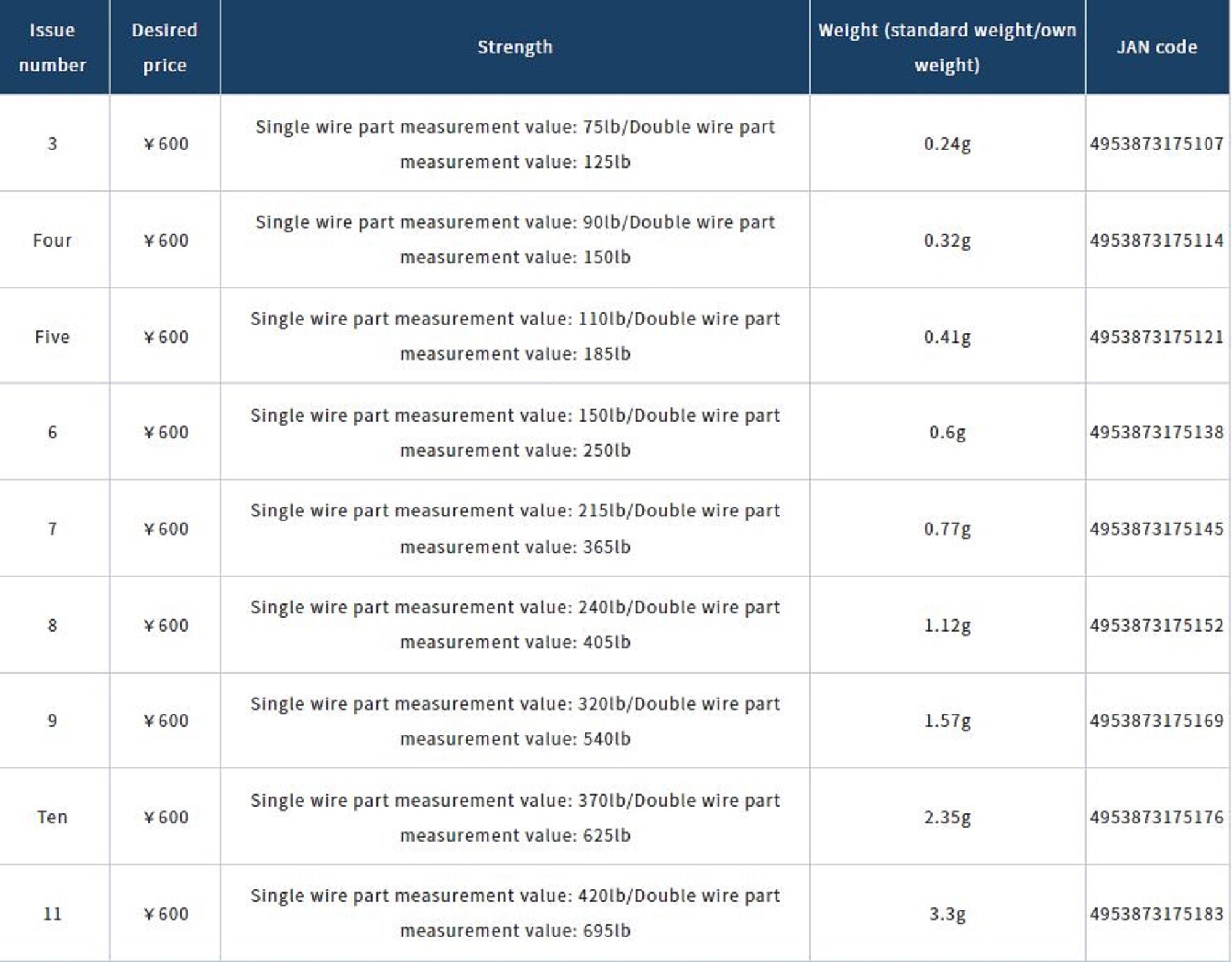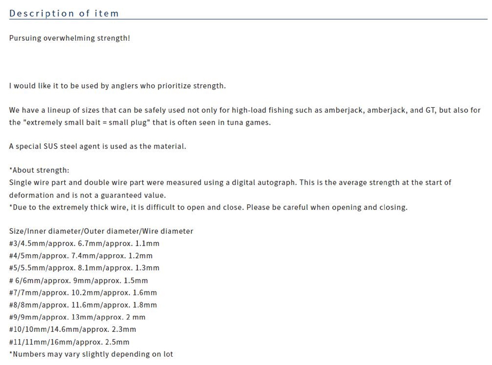 Strength: 240 lb