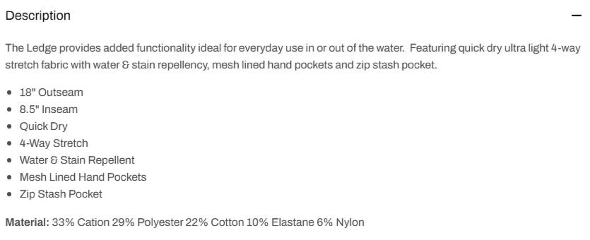Model: 1001 Shorts Board Shorts 18 Inch