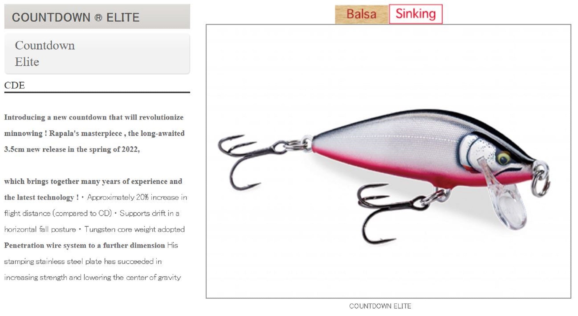Rapala Countdown Elite Sinking Lure CDE95/GDYM (2802)