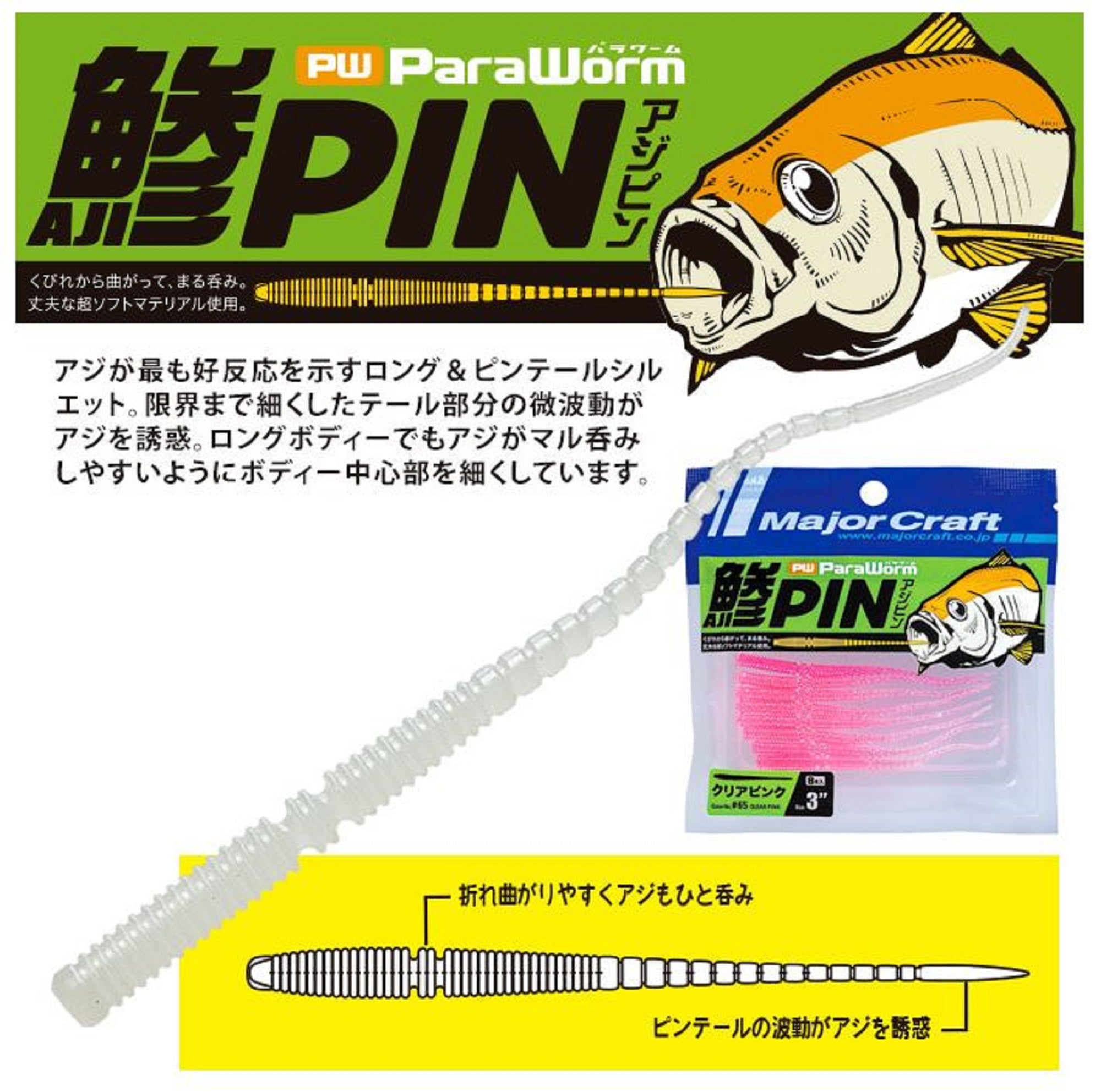 Sale Major Craft Soft Plastic Lure Paraworm 2.5 Inch PW-AJI PIN 059 (3033)