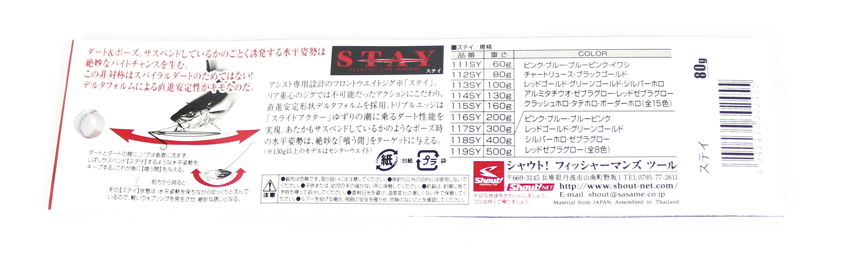 Shout 112-SY Metal Jig Stay 80 grams RGPZ (2455)
