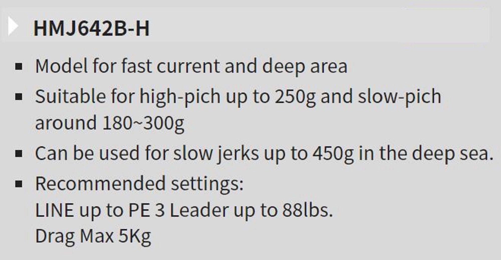 Lure: High150-250grams;Slow200-450grams