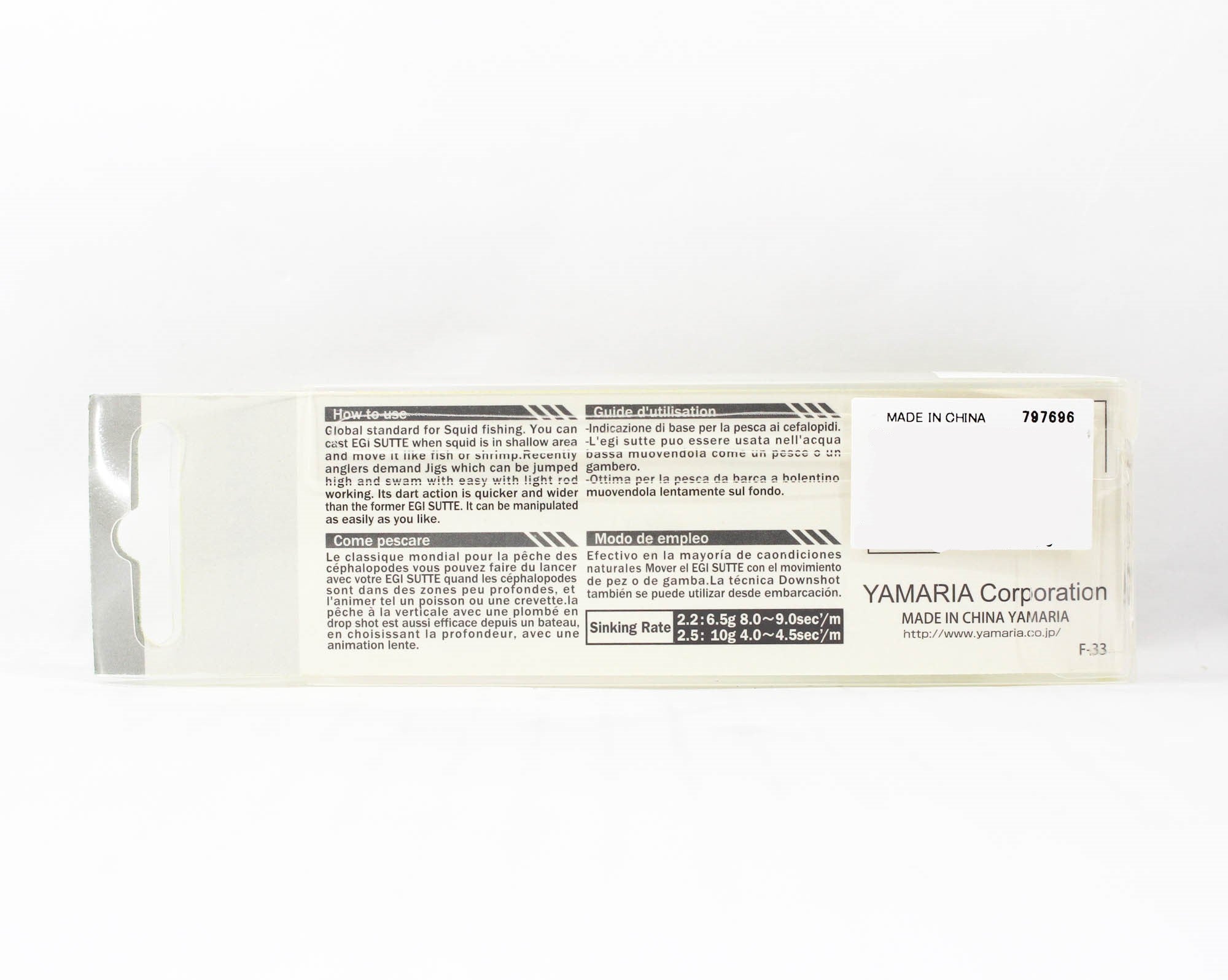 Yamashita Egi Sutte-R Squid Jig 2.2 NC 6.5 grams 8-9 sec per m F/NEB (3530)