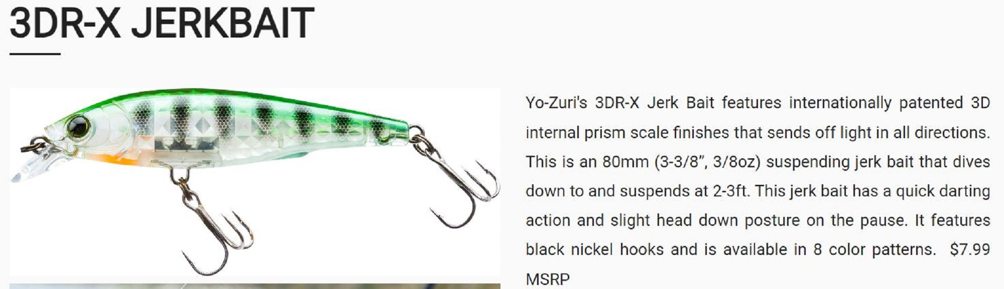 Yo Zuri 3DR-X Jerkbait 80SP Suspend Lure R1437-GSPC (8053)