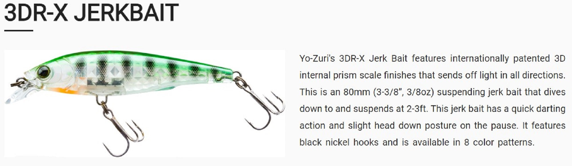 Yo Zuri 3DR-X Jerkbait 80SP Suspend Lure R1437-GSSM (8060)