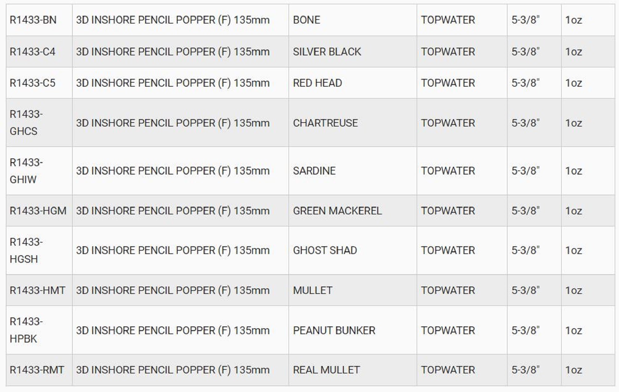 Yo Zuri Duel 3D Inshore Pencil Popper 135mm Floating Lure R1433-GHCS (6691)